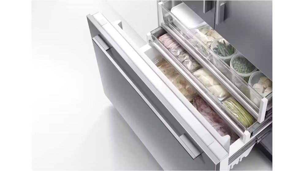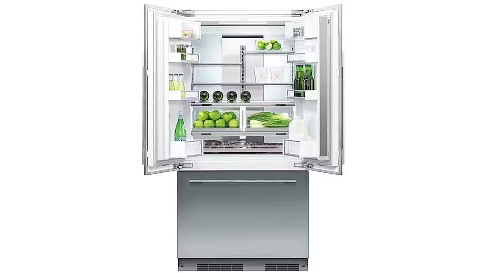 Get the most of your kitchen space with the Fisher & Paykel 90cm Series 7 Integrated French Door Refrigerator Freezer Ice & Water. With its fully integrated design, this fridge features ActiveSmart technology, energy efficiency, flexible shelving, and spill-safe glass shelves.